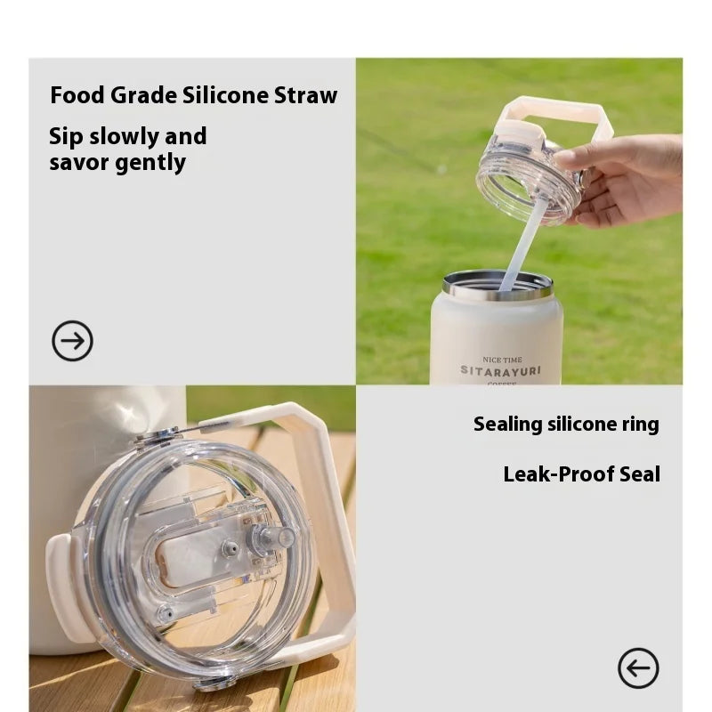Stainless Steel Thermal Bottle – Insulated Travel Tumbler with Handle & Straw