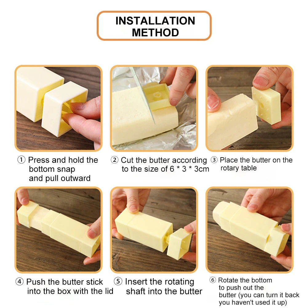 *2. Easy to use. Just insert a piece of butter in our dispenser and apply it to your favorite food. As the butter melts,simply rotate it out to move the butter to the top for ease of use.